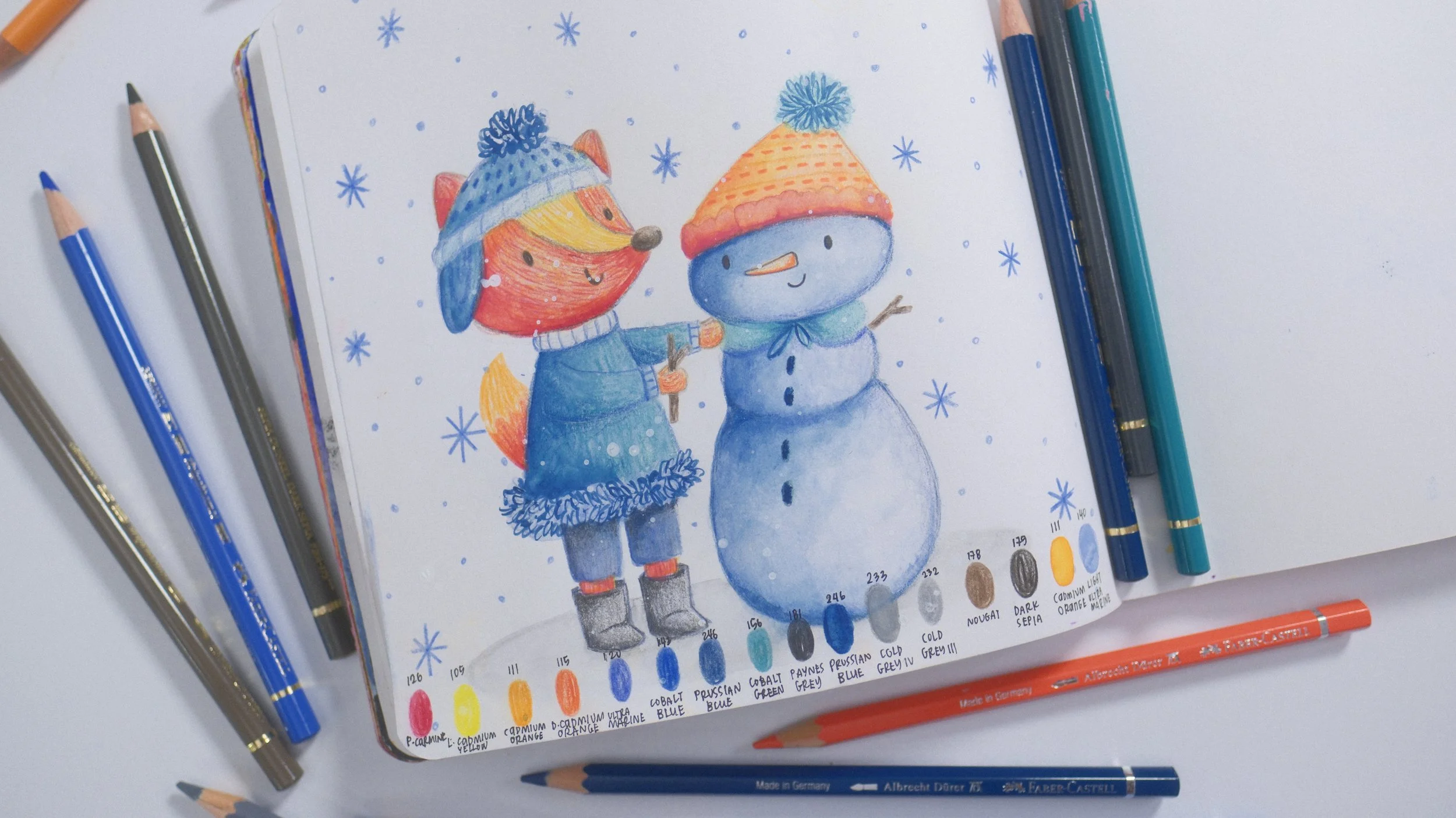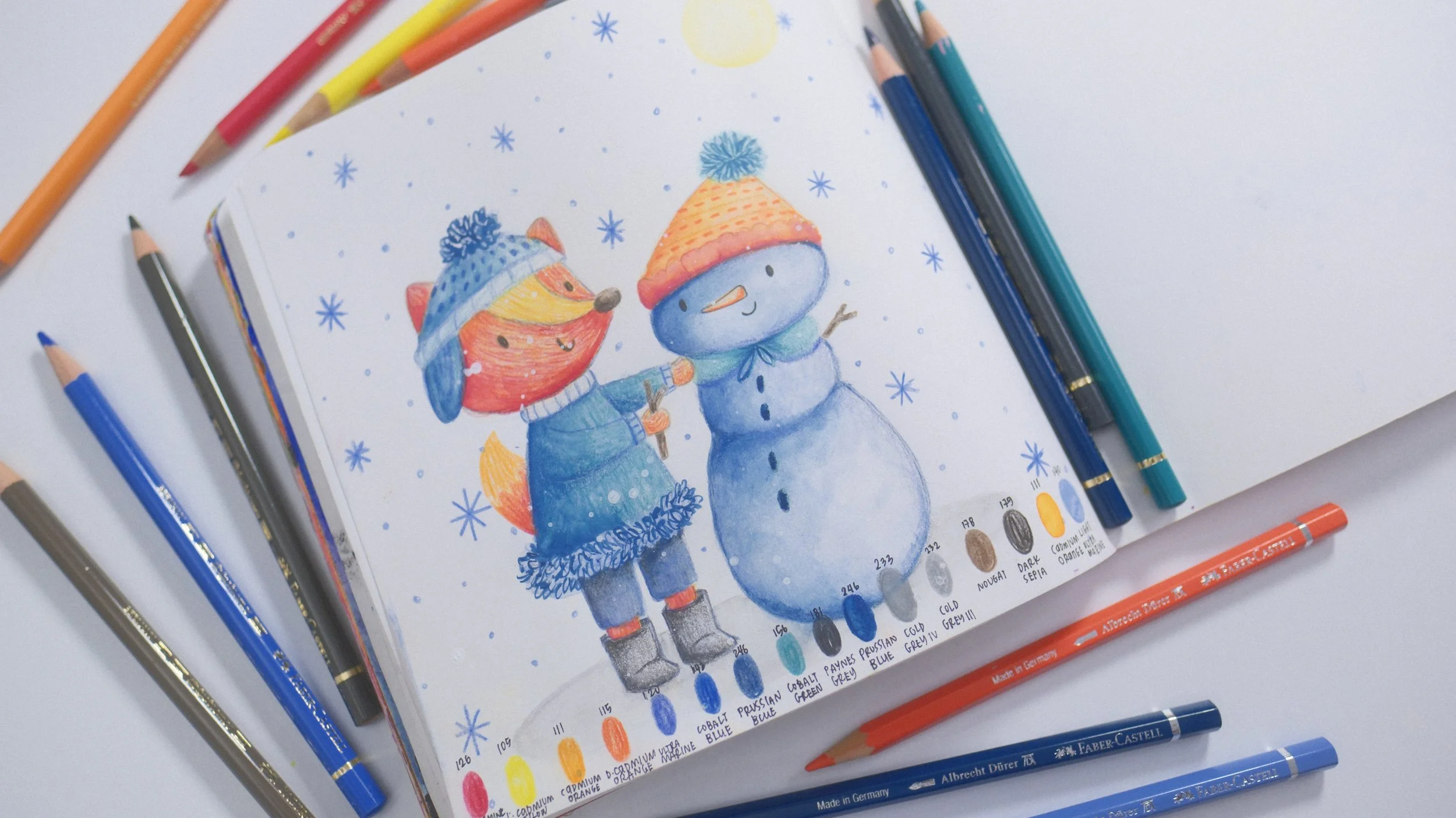 By the end, you’ll have a delightful festive illustration and a whole new confidence in mixing Polychromos with Albrecht Dürer pencils—plus a big smile on your face. ☃️✨