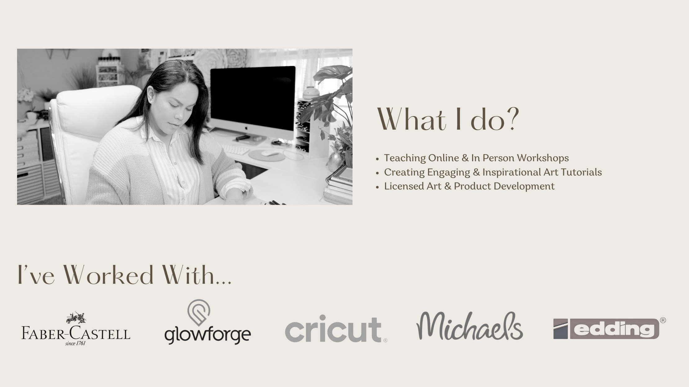 I’ve had the joy of working with brands like Faber-Castell, Blick Art, and Michaels Stores, creating classes and educational content for creatives of all levels. But at heart, I’m just someone who really wants art to feel less intimidating and a lot more fun.